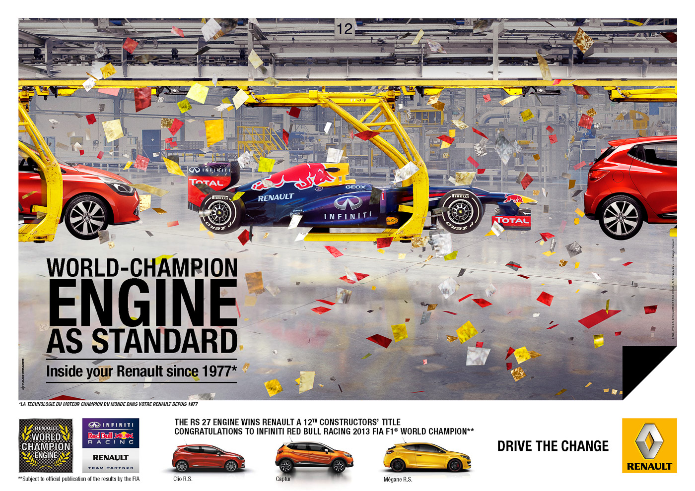 Au sein de Publicis Consultants, j’ai participé à la campagne internationale “World Champion Engine as Standard” pour Renault, célébrant l’excellence technologique et les performances issues de la compétition automobile.